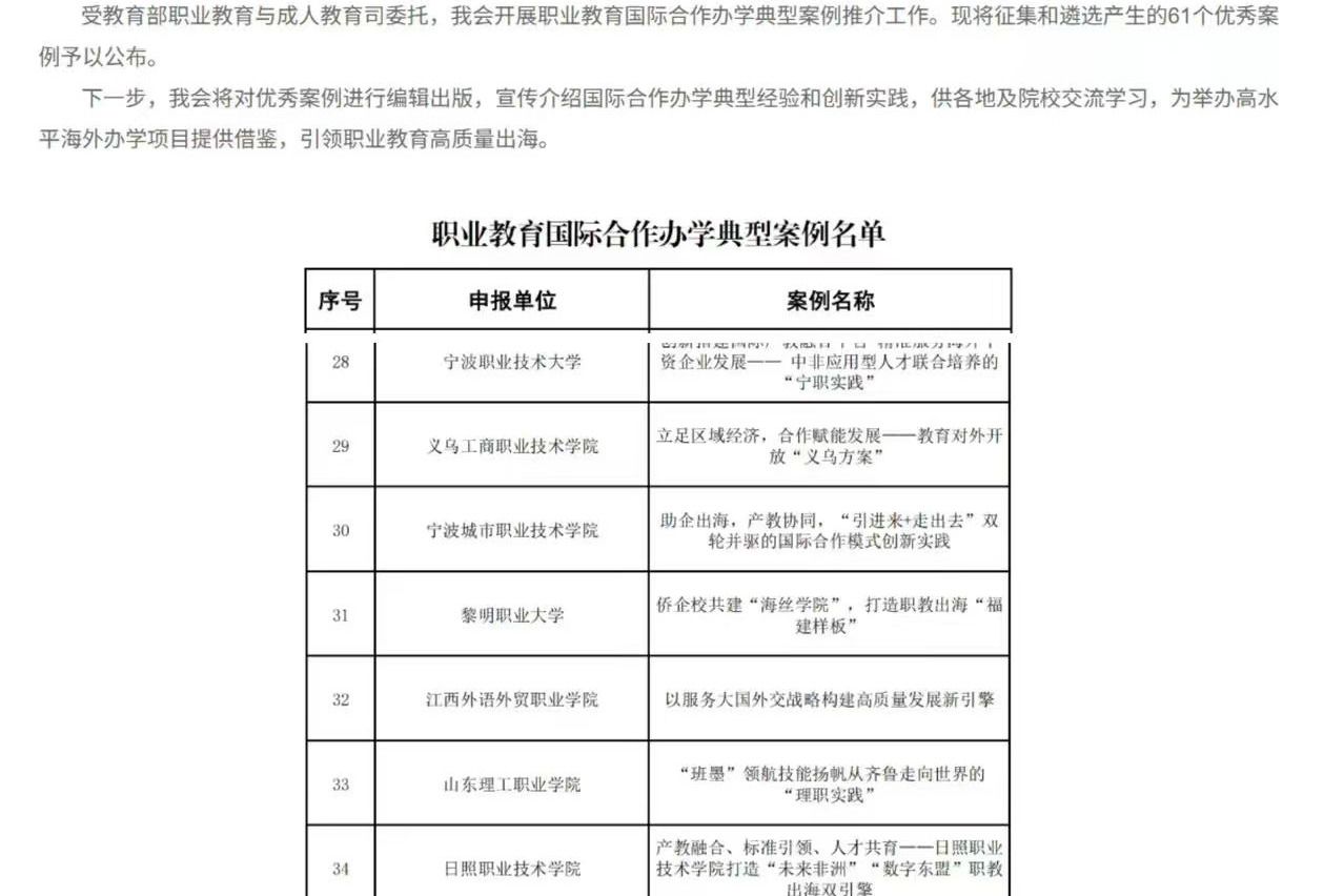 9月24日,由教育部职业教育与成人教育司组织的职业教育国际合作办学典型案例遴选结果公布,全国共有61个案例入选。我院报送的《从农业援非到品牌出海:“三阶四维”国际化办学创新实践》成功入选,成为职业教育国际合作领域的典型代表。案例梳理了米乐(中国)十五年来的国际化办学实践,形成了以“筑基-拓展-升华”为脉络的三阶递进国际化发展路径,构建起“政行企校协同、国际化师资培养、数字化赋能、文化融通”四维支撑体系,打造了“技术输出+...更多 -