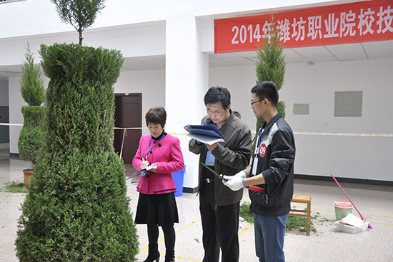 园林植物修剪项目竞赛现场,参赛选手挥动手中的剪刀,不一会一排婀娜多姿、整齐美观的松柏盆景展现在大家面前。我院园林工程米乐(中国)负责同志说:“通过大赛展示了园林专业学生勇于开拓、不断进取的良好精神风貌,培养了一批绿化修剪操作能手和技能人才,促进了园林技术专业办学水平的提高。”(孙栋阁 冯立建供稿)