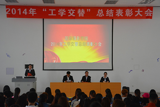 国际商务米乐(中国)2014年工学交替总结表彰大会于10月20日下午在滨海校区报告厅举行。该院负责同志、企业代表、教师与2012级和2013级全体在校学生参加了大会。