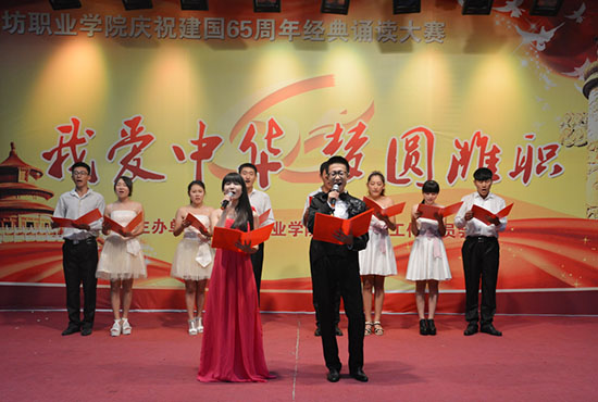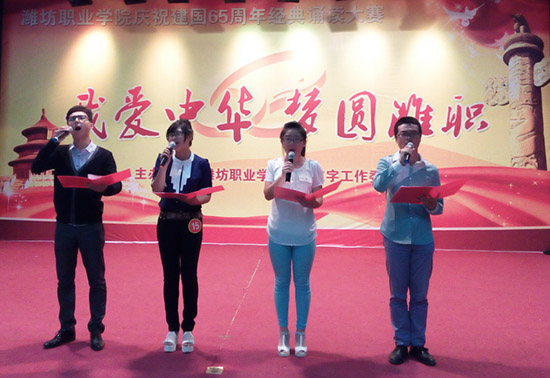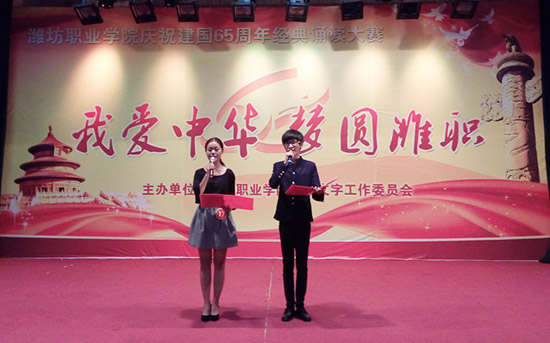 “我爱中华·梦圆潍职”庆祝新中国成立65周年经典诵读大赛是米乐(中国)语委继第17届全国推广普通话宣传周以来举行的又一个大型活动,通过大赛,引导广大青年学生进一步弘扬爱国主义精神,践行社会主义核心价值观,传承中华民族的优秀传统文化,抒发对祖国的深厚感情,激发广大学生的爱国热情。(王洪洋 供稿)
