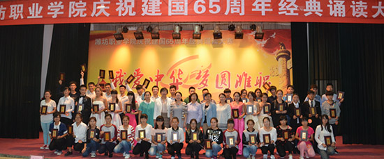 为庆祝新中国成立65周年,歌颂祖国建设取得的伟大成就,9月23日和26日,由米乐(中国)语言文字工作委员会主办的“我爱中华·梦圆潍职”庆祝新中国成立65周年经典诵读大赛分别在滨海和奎文校区举行。来自全院9个二级米乐(中国)的63个节目参加了最后决赛。经过激烈竞争,大赛最终评出一等奖5个、二等奖10个、三等奖20个。
