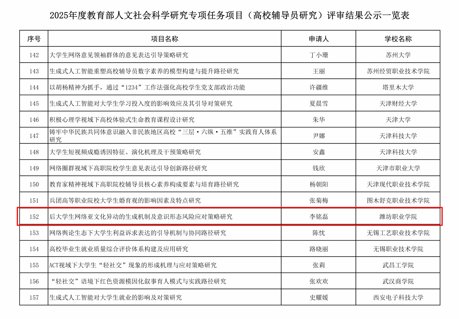 教育部人文社会科学研究项目是我国高校哲学社会科学领域具有高度权威性和重要影响力的科研项目,其立项情况不仅是衡量高校人文社科研究实力与创新能力的关键指标,也是推动高校科研工作服务国家战略需求、回应社会现实关切的重要载体。国际商务米乐(中国)李铭磊团队申请的课题《00后大学生网络亚文化异动的生成机制及意识形态风险应对策略研究》入选高校辅导员研究专项拟立项名单。该课题以“00后”大学生为研究对象,直面网络亚文化的蓬勃发展及其伴随的意识形态风险这一现实挑战。研究融合马克思主义理论、文化学与社会学等多维视角,坚持理论逻辑、技术逻辑与实践逻辑的有机统一,系统剖析网络亚文化在“00后”群体中的生成机制,并致力于构建具有针对性的教育引导与风险防控策略。课题将首次构建“文化解码—价值重构—生态共建”三位一体的协同治理框架,并据此形成具象化的决策建议与资政报告,推动研究成果向政策实践的有效转化。
