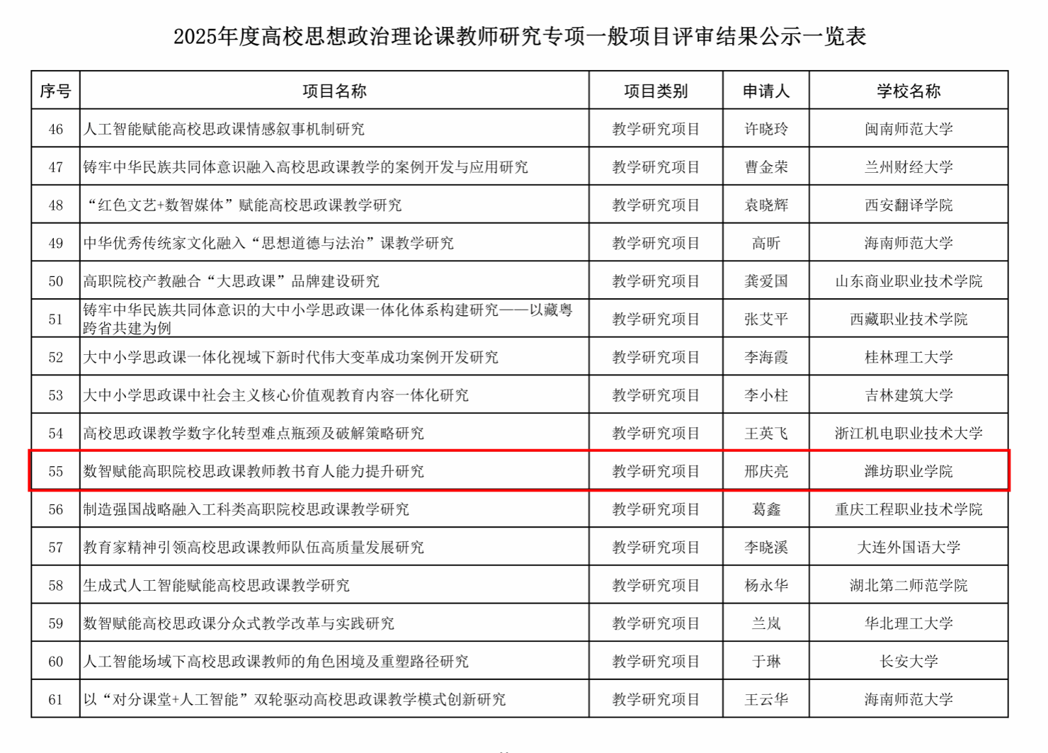 教育部高校思想政治理论课教师研究专项项目,旨在汇聚全国优秀思政课教师力量,围绕思政课建设中的关键问题与前沿课题开展有组织科研,为推进思政课改革创新、提升育人实效提供有力支撑。马克思主义米乐(中国)邢庆亮团队申请的课题《数智赋能高职院校思政课教师教书育人能力提升研究》入选拟立项名单。该课题应对新时代对思政课建设的要求,致力于破解数智化背景下高职院校思政课教师能力提升的现实难题,研究将通过构建思政课教师教书育人能力模型,建设“双融”课程资源库,探讨思政课教师教书育人能力标准,探索提升思政课教师教书育人能力主要策略,为高职院校强化思政课教师队伍专业化建设、切实提升思政教育育人实效提供重要理论支撑与实践指引。