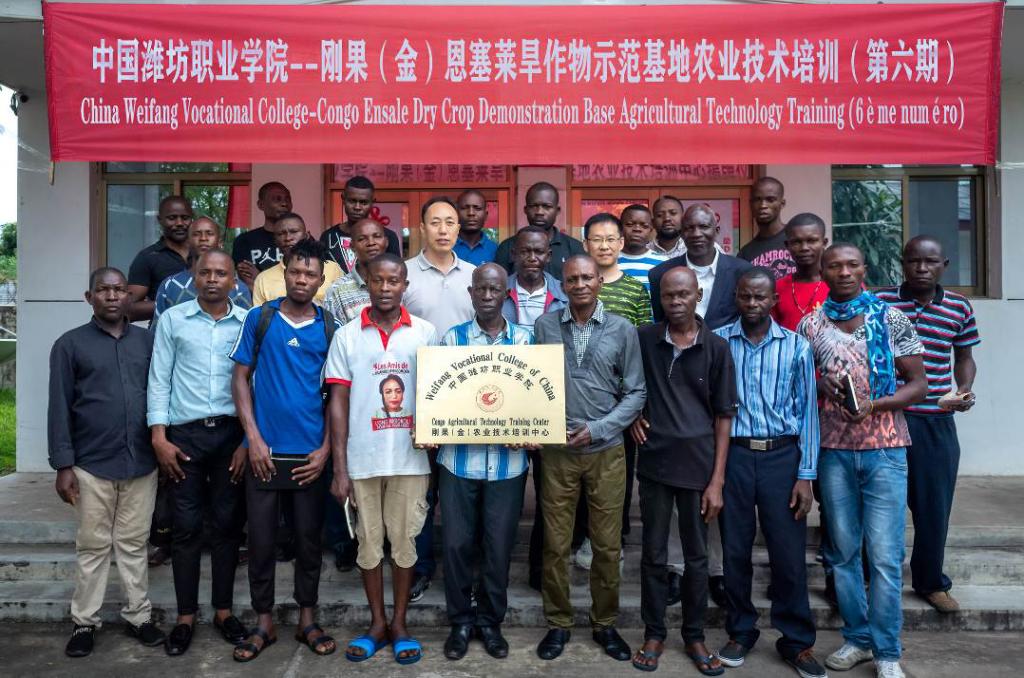 作为刚果(金)总统府办公厅战略储备局的合作项目,不断地实现粮食增产增收是重要的研究课题。本期项目组成功选育优良高产玉米品种6个、花生品种2个,我院两位专家根据当地土壤气候开展系列技术攻关,玉米花生精量播种,沙地平衡施肥,草地夜蛾综合防治等技术,保障了育种和生产示范工作的顺利进行。2019年主要玉米品种亩产达608Kg,创首都金沙萨地区高产记录,花生平均亩产327Kg,远超出当地产量150Kg以上。优良高产的作物品种和配套生产技术在一定程度上保障了刚果(金)的国家粮食安全。刚果(金)当地蔬菜生产落后,市场供不应求,我院两位专家引进栽培26种蔬菜,开发热带地区蔬菜生产和良种繁育技术,改良灌溉方式,利用防虫网室保护栽培,制作酵素菌堆肥,综合防治果实蝇等。潍坊西瓜、潍县萝卜、鲜食番茄这些家乡品种也在非洲安家落户,其中西瓜品质口感极佳,在刚果(金)市场可谓独一无二。根据当地技术需求,两位专家制定培训标准,开发培训教材,大力开展农业科技培训和生产示范推广,为当地生产者赠送良种并提供技术支援。据统计从2018年1月至2019年12月两年的时间里共培训160多次,田间技术指导50余次,参加培训刚方人员约3000多人次,在我院专家的引领下当地的蔬菜种植面积由原来的不足百亩扩大到现在的10000余亩,极大的丰富了当地的蔬菜市场,使恩塞莱地区成为首都金沙萨的蔬菜主要供应基地。鉴于我院两位专家的卓越工作,刚果(金)总统府多次派出官员来项目组考察慰问,并为两位专家颁发了“总统府特别贡献奖”,以表彰米乐注册两位专家为刚果(金)人民的吃饭问题做出的突出贡献。