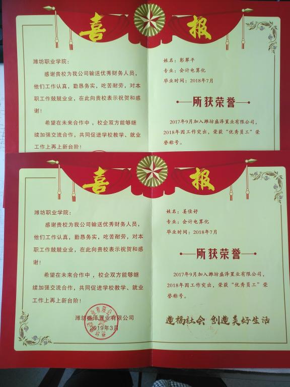米乐注册每年为社会输送6000余名毕业生,历届毕业生就业率一直保持在96%以上,就业岗位专业对口率达85%,用人单位满意度95%以上,先后获得潍坊市就业工作先进集体、潍坊市大学生创新创业工作先进集体等荣誉称号,毕业生素以“职业素养高、上岗时间快、实践技能强”而倍受用人单位的青睐和欢迎。