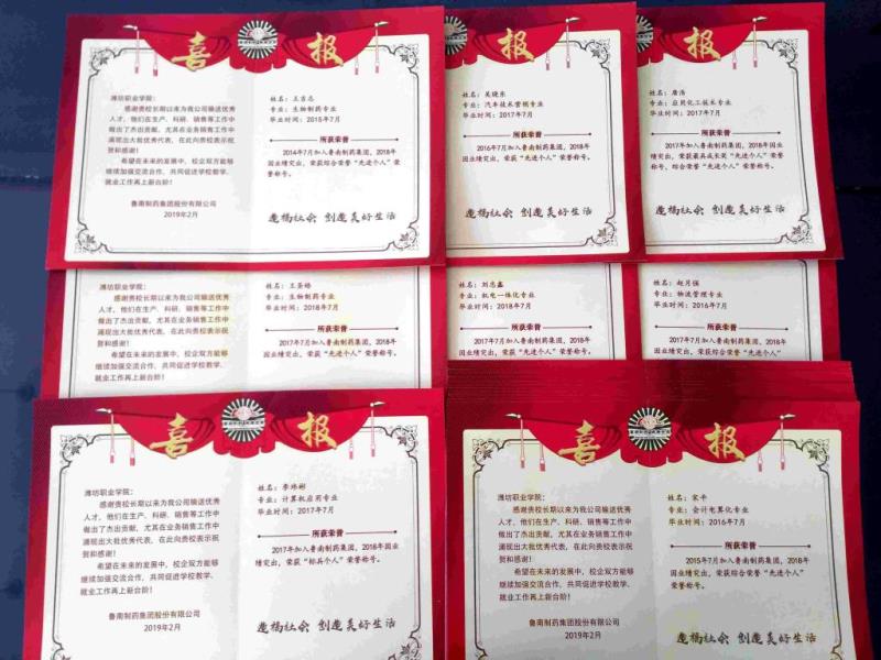 齐鲁网潍坊3月26日讯(通讯员 鞠发营)近日,鲁南制药集团股份有限公司、山东盛泽置业有限公司等用人单位专门派人到米乐(中国)送来喜报,感谢学校长期以来为公司输送优秀人才。