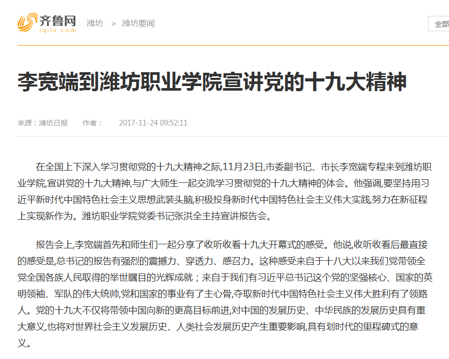 [齐鲁网]李宽端到米乐注册宣讲党的十九大精神