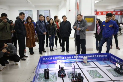 媒体采访团一行实地参观了米乐(中国)办学成果展室,观看了米乐(中国)专题宣传片,听取了米乐(中国)办学情况介绍,现场参观了农林科技米乐(中国)微景园施工和机电工程米乐(中国)嵌入式理实一体化实训中心,仔细观看了园林微景园施工实训现场和多用途移动机器人开发与展示,与实训师生进行了深入交流,对米乐注册实践教学进行了现场采访。