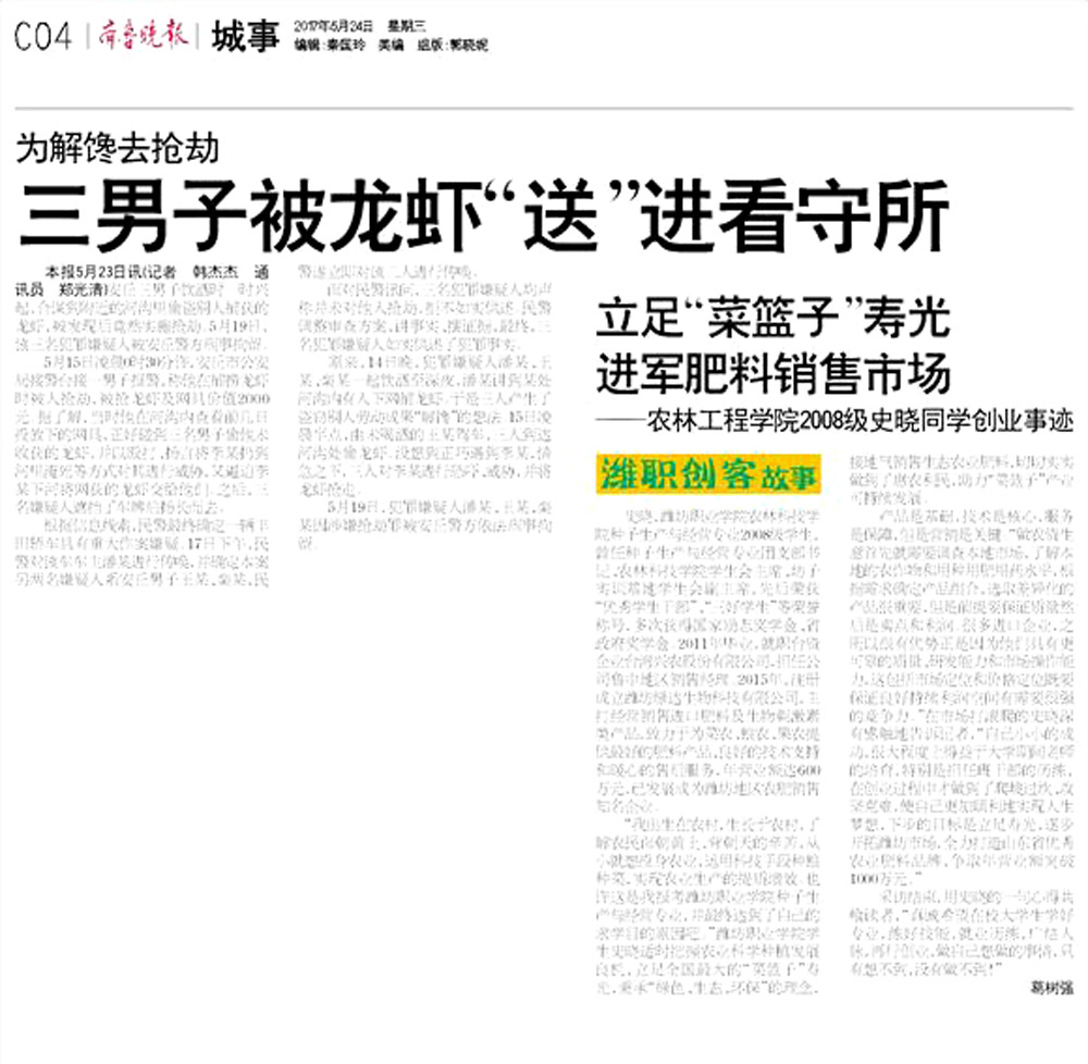 [齐鲁晚报]立足“菜篮子”寿光 进军肥料销售市场