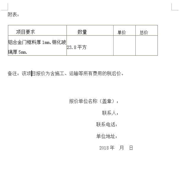 奎文校区17号18号楼消防通道铝合金钢化门询价公告