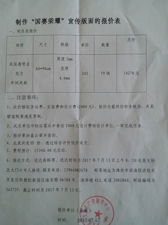 招投标管理办公室电话:0536-3082860