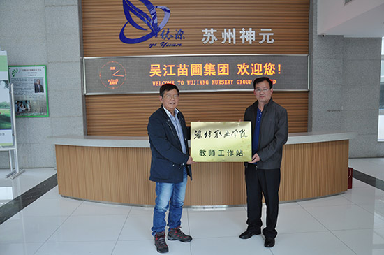 座谈会结束后,该院负责同志与江苏吴江苗圃集团董事长滕士元先生进行会谈,就进一步加强校企合作、加强校企科技研发等方面的工作做了深入探讨。会谈结束后,举行了“米乐注册教师工作站”挂牌仪式。