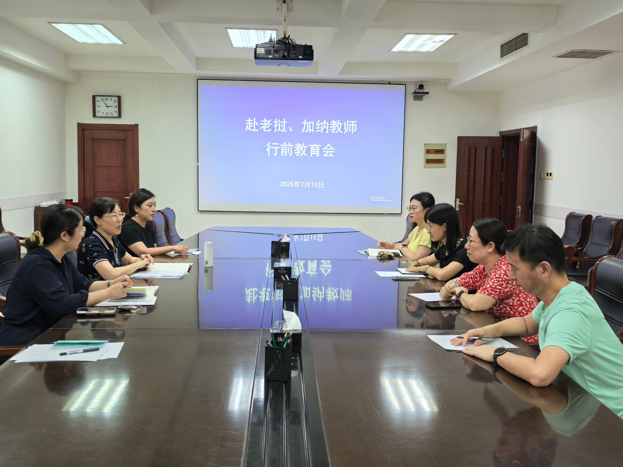 国际交流与合作处负责同志就两个项目的具体行程安排、在外注意事项、安全应急预案、外事礼仪规范、保密要求、工作总结与汇报要求等进行了详细说明和部署,并对教师们关心的问题作了解答。