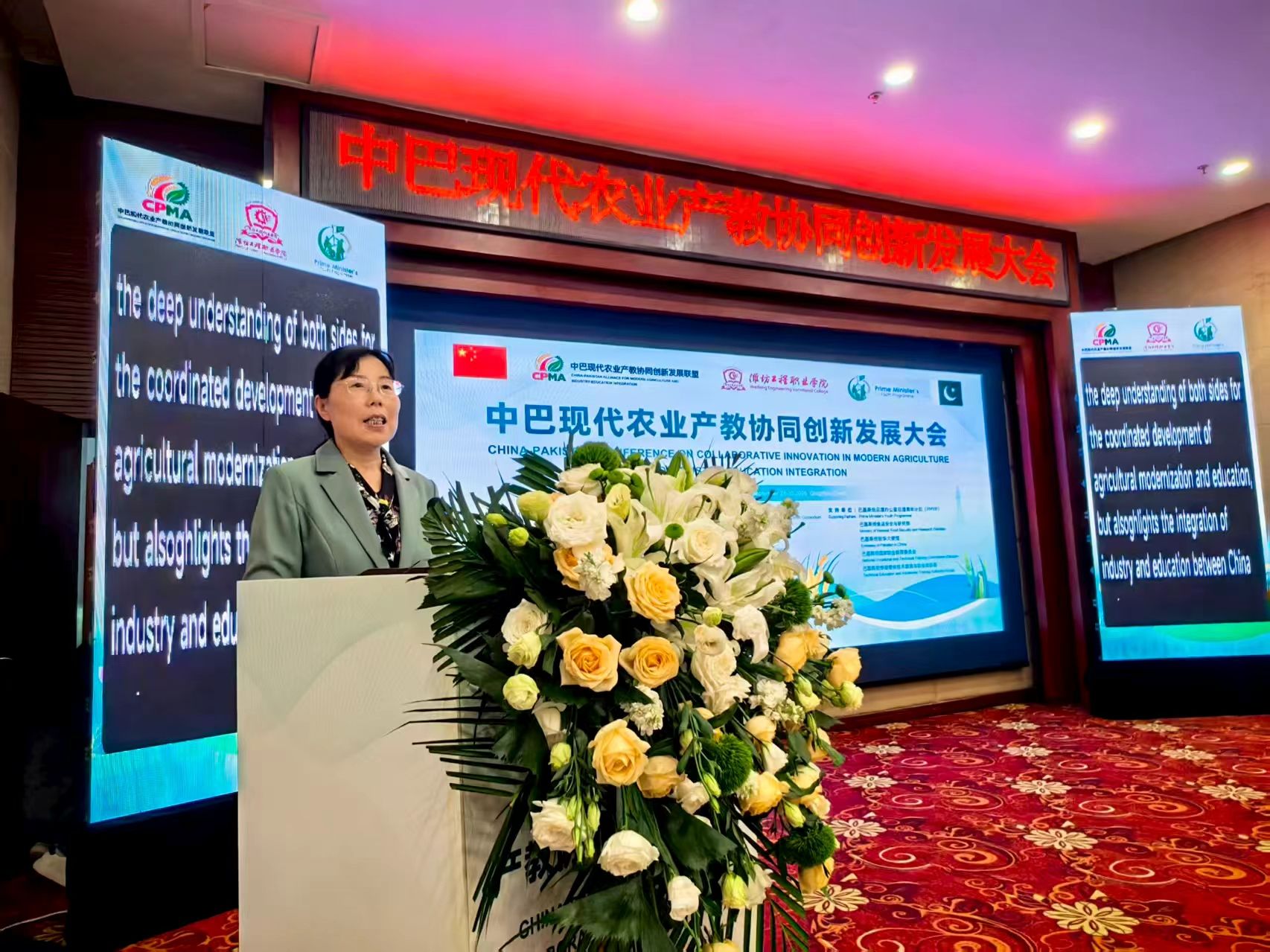 9月29日,中巴现代农业产教协同创新发展大会在青州市举行。巴基斯坦驻华大使馆科技参赞汗·穆罕默德,巴基斯坦旁遮普省技能发展与创业部秘书长纳迪尔·查塔,潍坊市人民政府党组成员、副市长狄波等出席大会。米乐(中国)副院长陈美霞应邀参会,并在职业教育国际合作案例分享环节作交流发言。